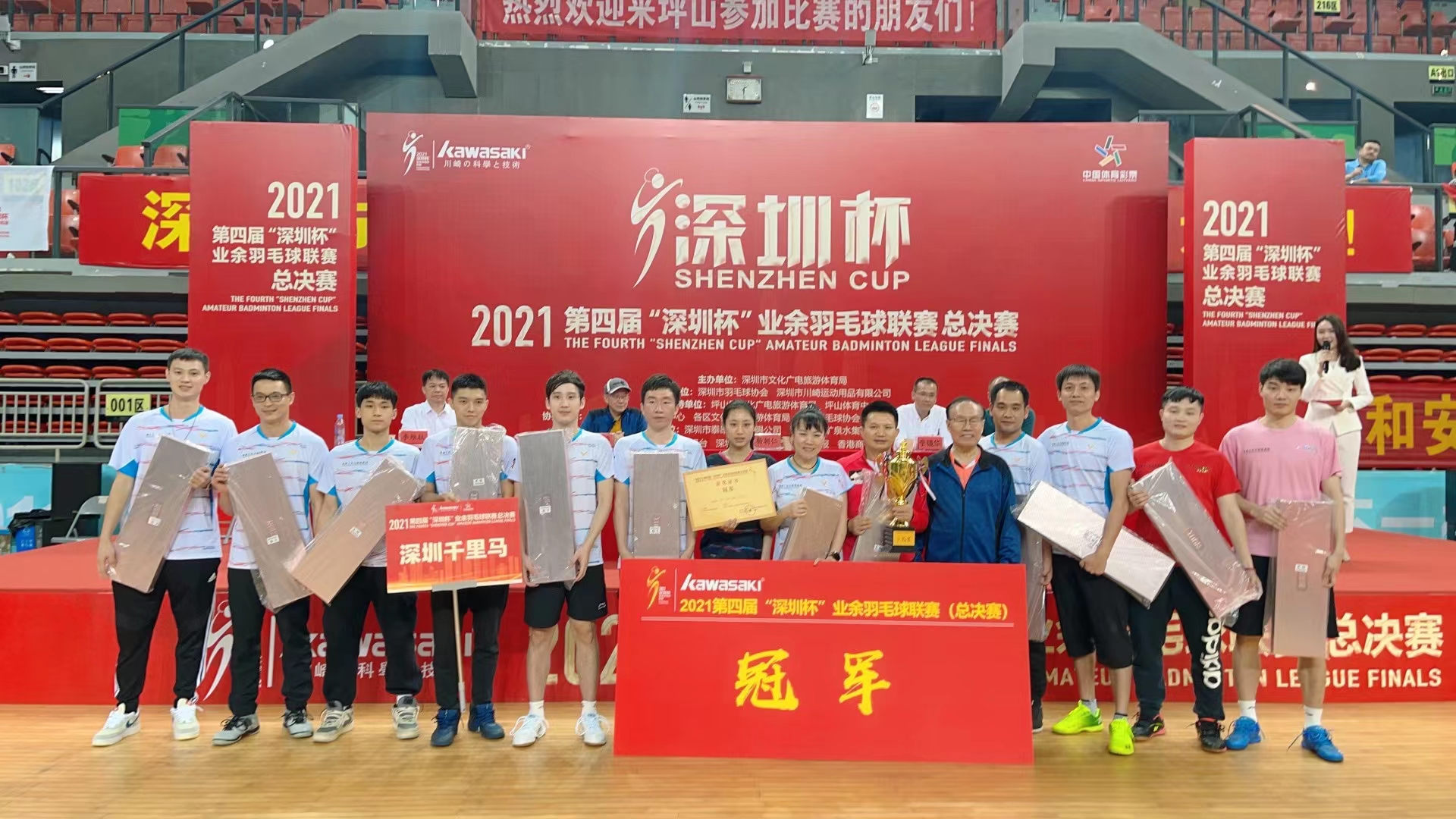11月28日,2021第四屆“深圳杯”業(yè)余羽毛球聯(lián)賽總決賽在坪山體育中心落幕。 經(jīng)過(guò)緊張激烈的角逐,最終深圳千里馬力克群雄,奪得了本屆“深圳杯”的冠軍。 △左一為深圳千里馬李向東董事長(zhǎng) “深圳杯”聯(lián)賽是深圳市業(yè)余規(guī)格最高的民間羽毛球賽事,歷時(shí)1個(gè)月,覆蓋全市11個(gè)行政區(qū),設(shè)坪山、龍崗、南山、光明4大分站賽,最大程度覆蓋了全市的羽毛球愛(ài)好者,真正做到了全民參與。 總決賽從各分站賽脫穎而出的16支代表隊(duì)伍展開(kāi)最終較量,爭(zhēng)奪“深圳杯”最高榮耀!最終經(jīng)過(guò)145場(chǎng)435局比賽較量,深圳千里馬力克群雄,奪得了本屆“深圳杯”的冠軍。 深圳千里馬隊(duì)員代表總決賽選手宣誓