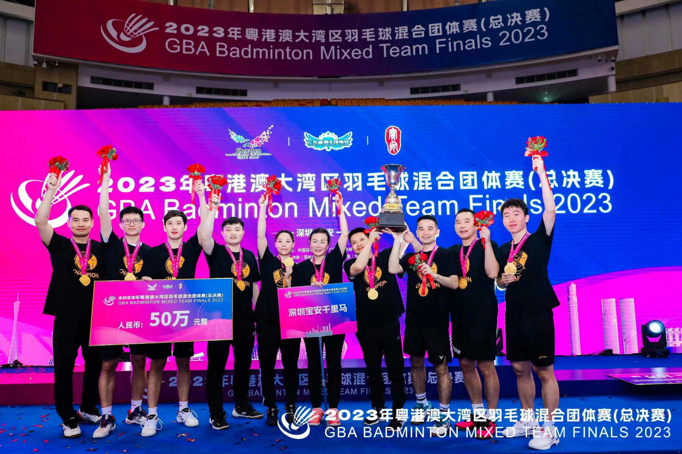 11月11日,2023年粵港澳大灣區(qū)羽毛球混合團(tuán)體賽(總決賽)在寶安體育館開(kāi)拍。共有來(lái)自香港、澳門(mén)、廣州、深圳、珠海、佛山、東莞、中山、惠州、江門(mén)、肇慶等11個(gè)大灣區(qū)城市羽協(xié)組隊(duì)參賽,今年賽事更是擴(kuò)大“朋友圈”,力邀馬來(lái)西亞、泰國(guó)羽毛球協(xié)會(huì)精英選手參賽,16支精英隊(duì)伍148 名高水平選手齊聚深圳。本次比賽由中國(guó)羽毛球協(xié)會(huì)、廣東省體育局指導(dǎo)、廣東省羽毛球協(xié)會(huì)、深圳市文化廣電旅游體育局、寶安區(qū)人民政府共同主辦,寶安區(qū)文化廣電旅游體育局承辦。 深圳寶安千里馬隊(duì)代表寶安區(qū)人民政府參賽,在淘汰賽階段和1/4決賽上分別戰(zhàn)勝了廣東省羽毛球協(xié)會(huì)、香港之星羽毛球會(huì),最終以2:0戰(zhàn)勝馬來(lái)西亞LCBA隊(duì)問(wèn)鼎灣區(qū)之巔,奪得2023年粵港澳大灣區(qū)羽毛球混合團(tuán)體賽(總決賽)總冠軍。 比賽現(xiàn)場(chǎng) 比賽現(xiàn)場(chǎng) 總決賽以打造灣區(qū)國(guó)際性、區(qū)域性品牌賽事為目標(biāo),全力打造高水平、高質(zhì)量、高品質(zhì)的灣區(qū)運(yùn)動(dòng)新品牌。今年賽事延續(xù)2022年推出“百萬(wàn)獎(jiǎng)金”,冠、亞、季軍獎(jiǎng)勵(lì)分別高達(dá)50萬(wàn)、30萬(wàn)、10萬(wàn)獎(jiǎng)勵(lì)。總冠軍得主、深圳寶安千里馬隊(duì)路源表示,本次賽事競(jìng)賽水平很高,隊(duì)伍在頂住了馬來(lái)西亞多輪強(qiáng)勢(shì)進(jìn)攻,為深圳、為寶安將冠軍寶座留在深圳。
