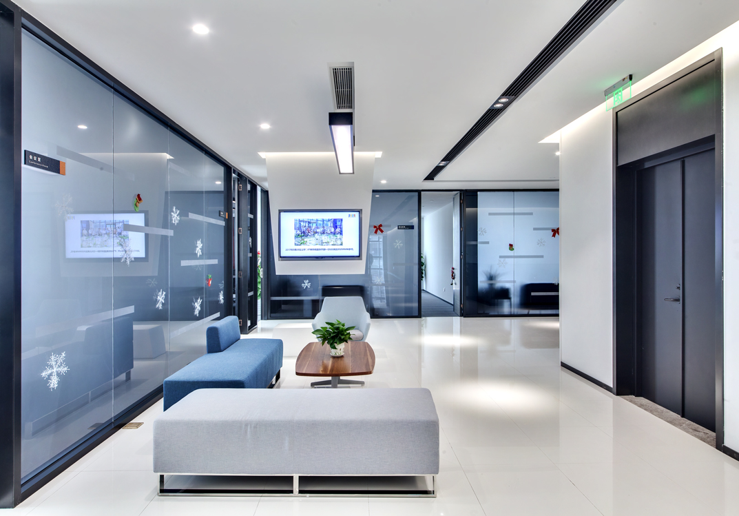 設(shè)計(jì)說明 本項(xiàng)目以極簡風(fēng)格,色調(diào)上以黑白灰為主,藍(lán)色、綠色和橙色為輔。從最初的設(shè)計(jì)開始,便致力于提供最舒適的辦公空間,這一點(diǎn)在視覺感受上最能直接體現(xiàn)。