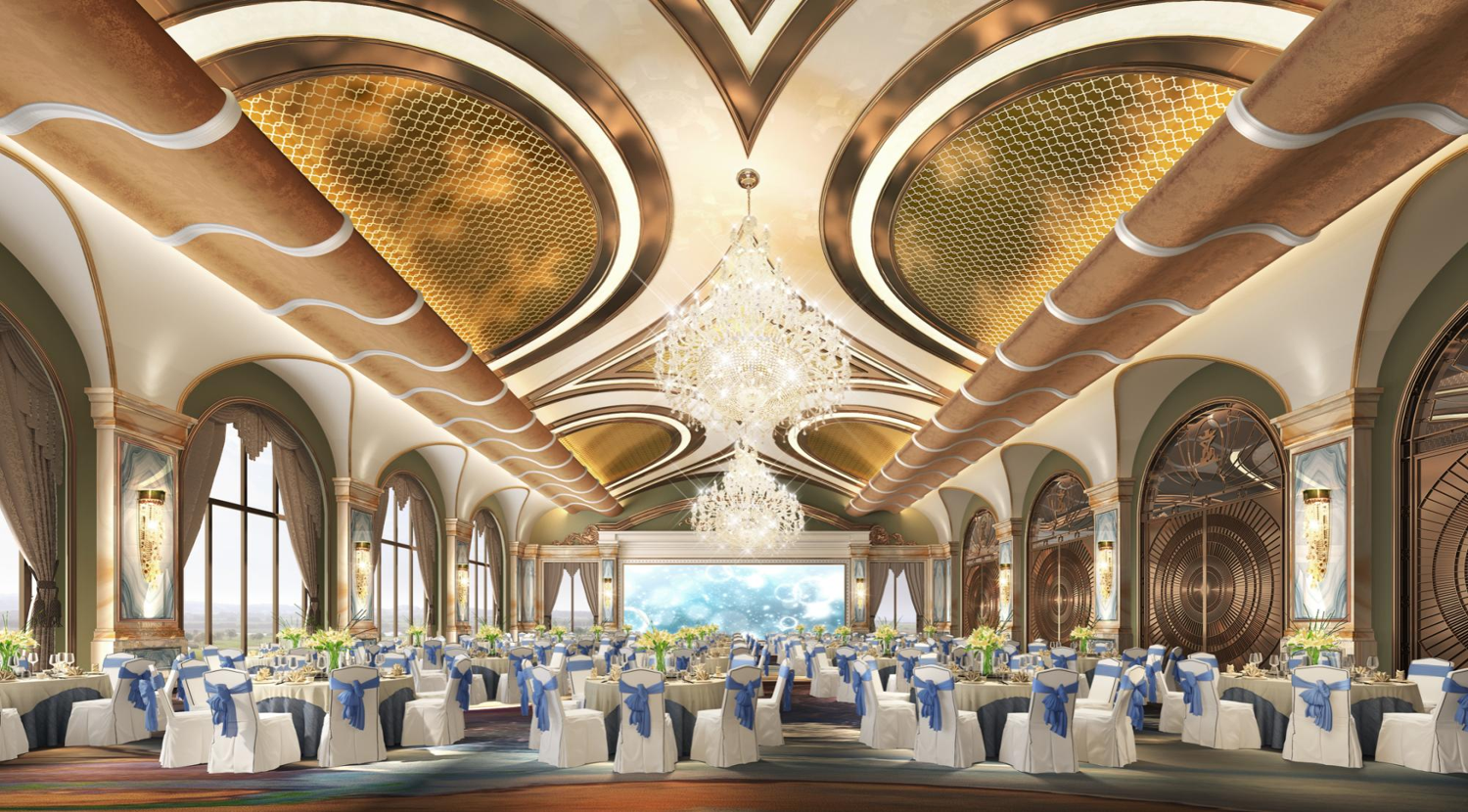 霸州國(guó)際酒店為五星級(jí)豪華溫泉酒店,酒店為新古典設(shè)計(jì)風(fēng)格,沒有復(fù)雜的功能分割,整體設(shè)計(jì)氛圍營(yíng)造出一種舒適、奢華的空間感受,酒店的設(shè)計(jì)思想是來源于對(duì)宮殿城堡的喜愛和無限幻想,把現(xiàn)代風(fēng)格和異域文化風(fēng)格結(jié)合起來。整個(gè)空間色彩豐富,襯托高品位的家具、燈具及藝術(shù)品陳設(shè),結(jié)合突出的立體感和節(jié)奏感,烘托出酒店高雅的文化氛圍。